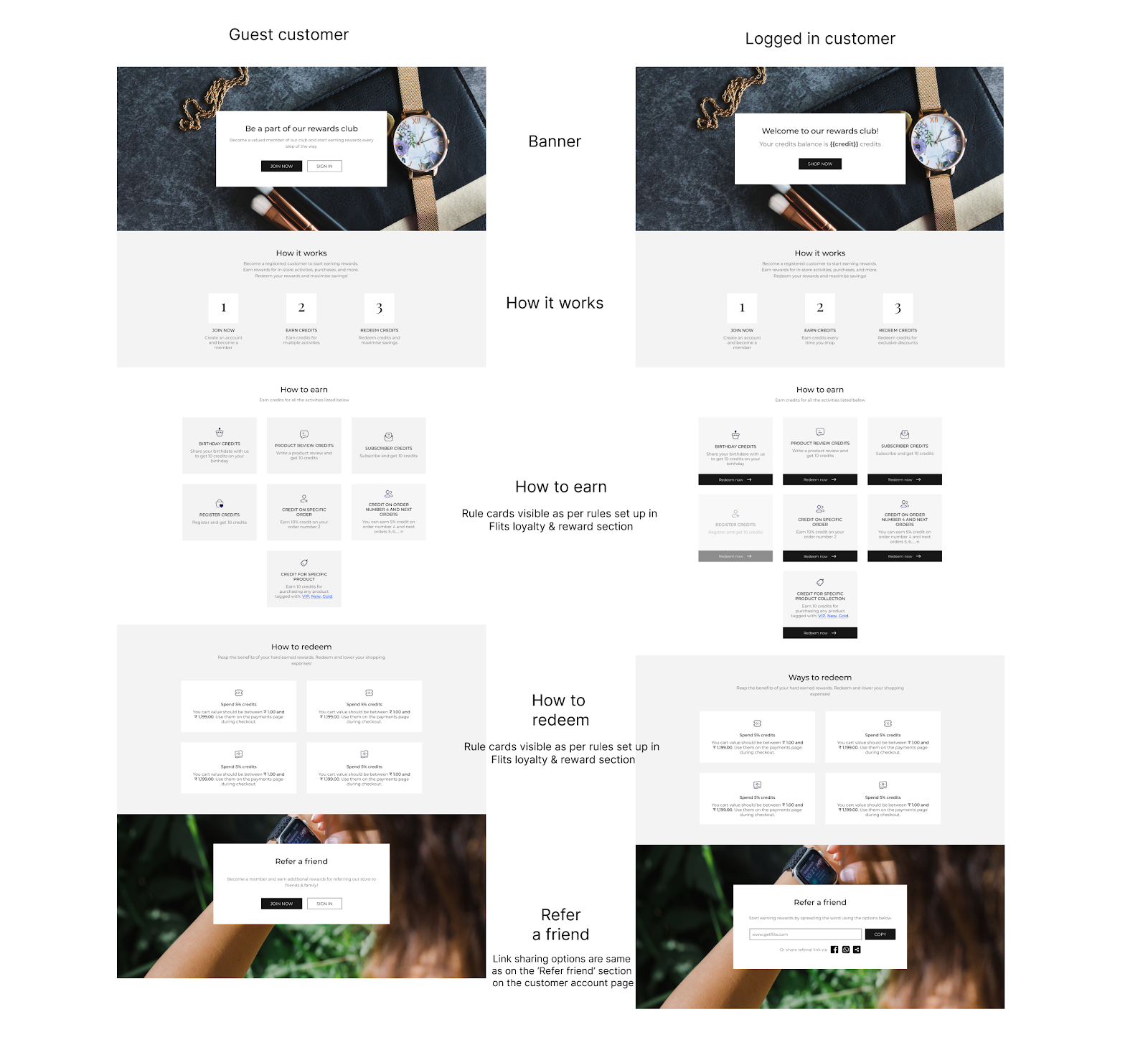 The "Refer a Friend" section's banner option lets you set a banner image on the landing page for both guest and logged-in users.