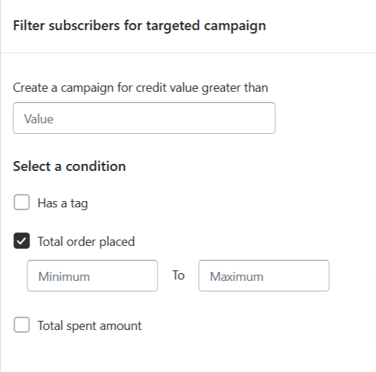 You can send notifications to subscribers with greater than X amount as points. For example you wish to target subscribers with credits above $10 then you can write 10 in the input box in front of create campaign for points value greater than.